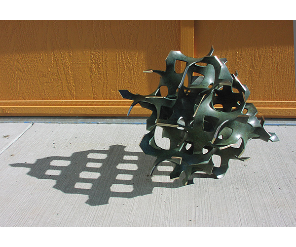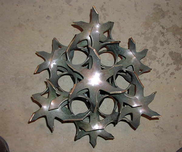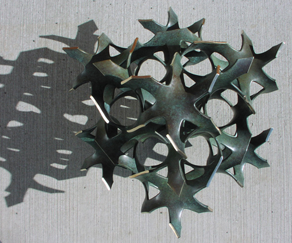 A commissioned design based on the gyroid. This was cast by Reinmuth Bronze Studios, a remarkable foundry run by a great artist.