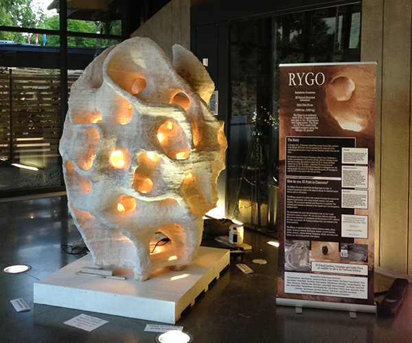 It was air freighted to Vancouver, where it spent a few months in a gallery. The signs on the floor in front of it read "Please do not climb on the sculpture." This was at that time the only 3D print in North America to need that particular warning.