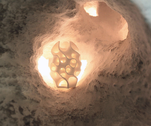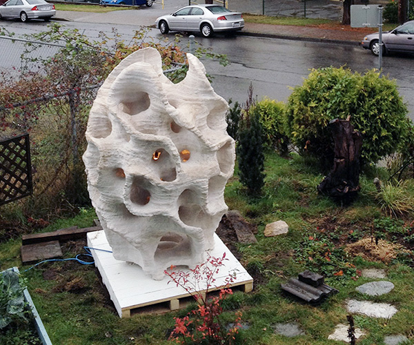 This 7-foot cement sculpture was built by D-Shape, courtesy of Dr. Enrico Dini, in 2012.