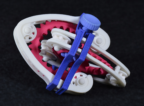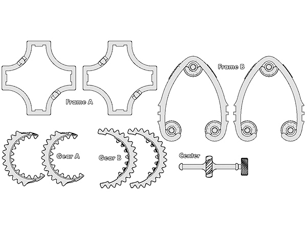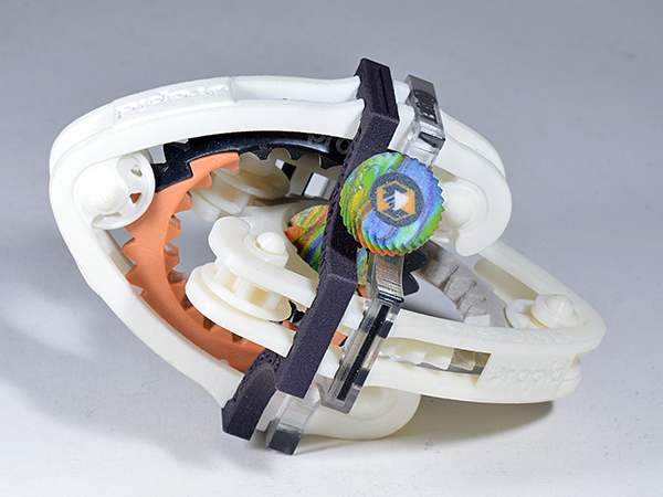 I designed this snap-fit puzzle as a party favor for the SME Rapid conference in 2011. This is a big trade show, and the idea was that for each of its nine parts, a vendor would volunteer to produce a few hundred of them, and then conference-goers would have to run around the show floor collecting them, then assemble them into the completed piece.