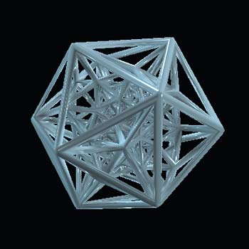 This 4-dimensional polytope is the 24-cell with corners truncated, so it becomes an alternating lattice of icosahedra and tetrahedra. Beloved by 4-space enthusiasts far and wide, this is the sole polytope on this site which is not one of the six regular solids in that space.